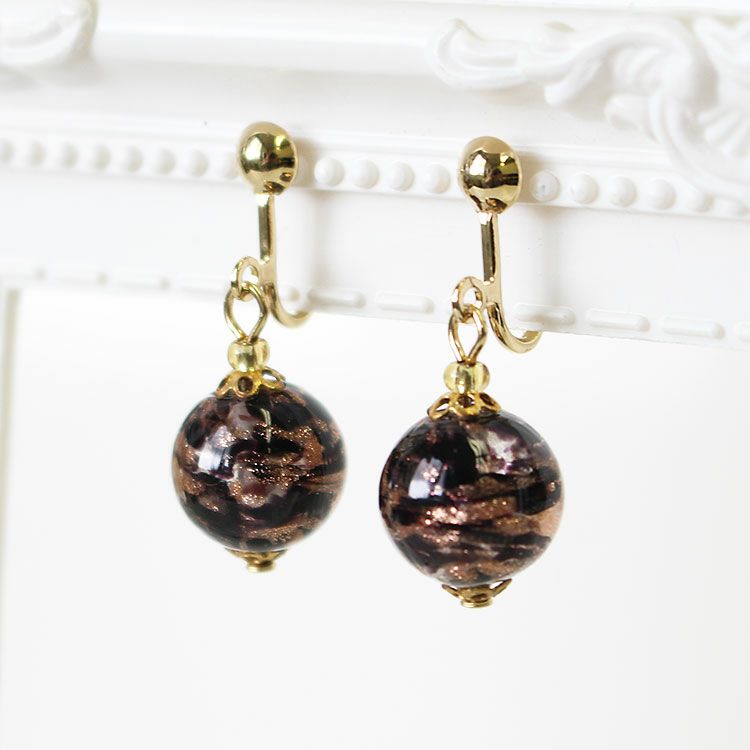 ベネチアンガラスアヴェンチュリーナビーズイヤリング