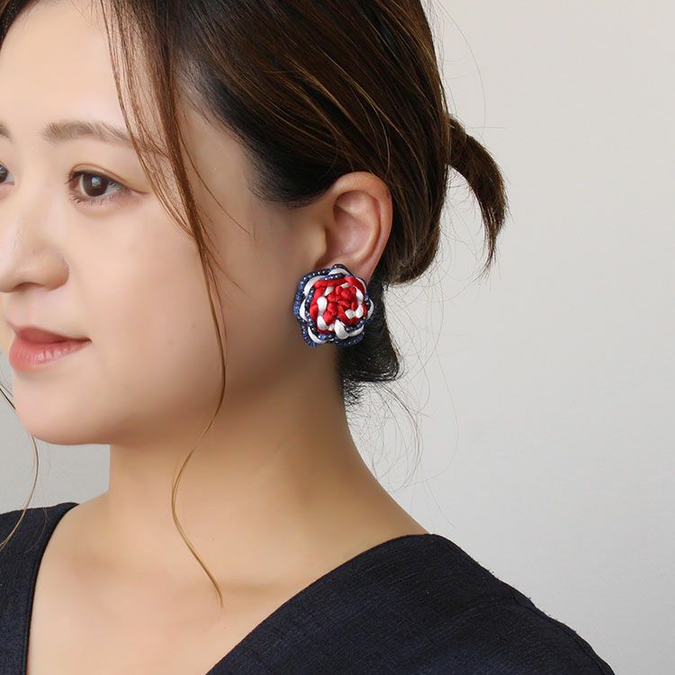 鮮やかなトリコロールカラーが目を引くイヤリング。