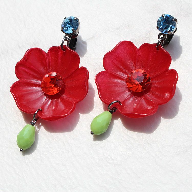 大ぶりのフラワーパーツと明るいカラーが、顔周りを華やかにしてくれる大ぶりイヤリング。
