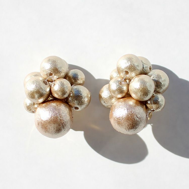 肌馴染みの良いベージュカラーのコットンパールイヤリング。
