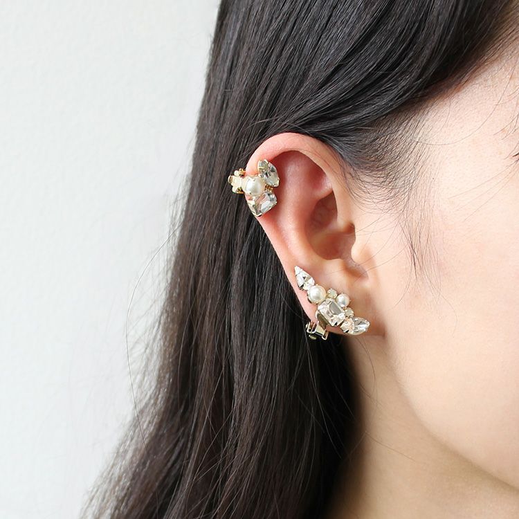 【WEB限定】クリスタルガラス&パールイヤリング/3211007G