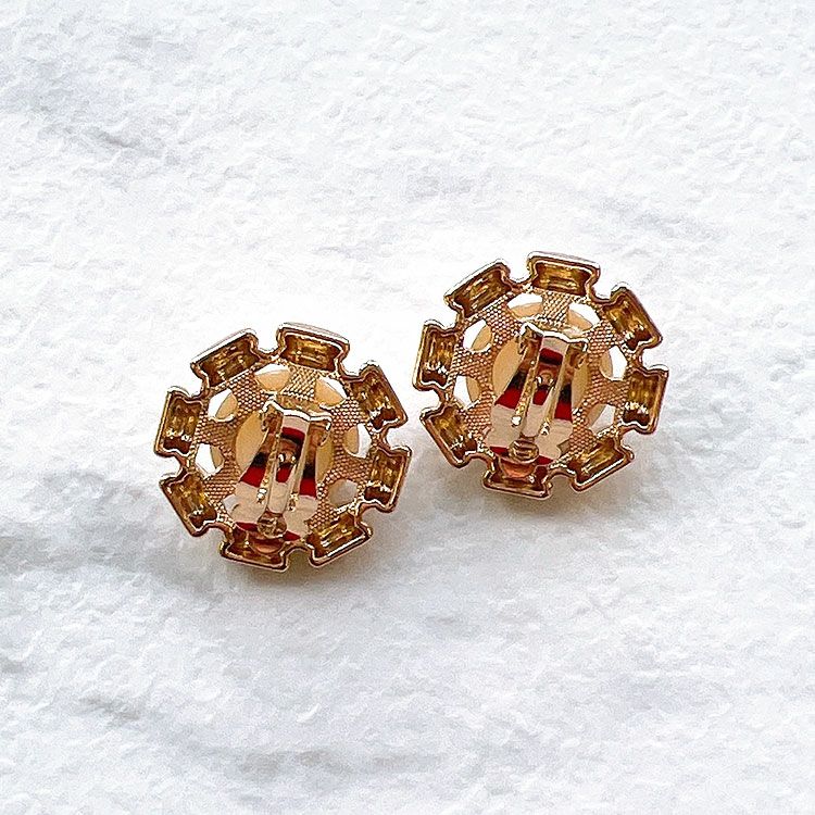 フラワー台座に大粒パールビジューを組み合わせたクラシカルなイヤリング。