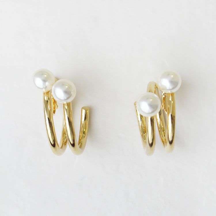 パール×メタルフープイヤリング