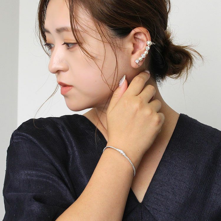 パール×クリスタルガラスイヤ-カフ(両耳用)/3240058