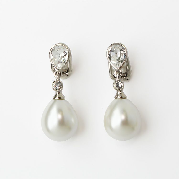 ドロップシェイプのクリスタルガラスとパールが、品良くさりげない華やぎを添えてくれます。
