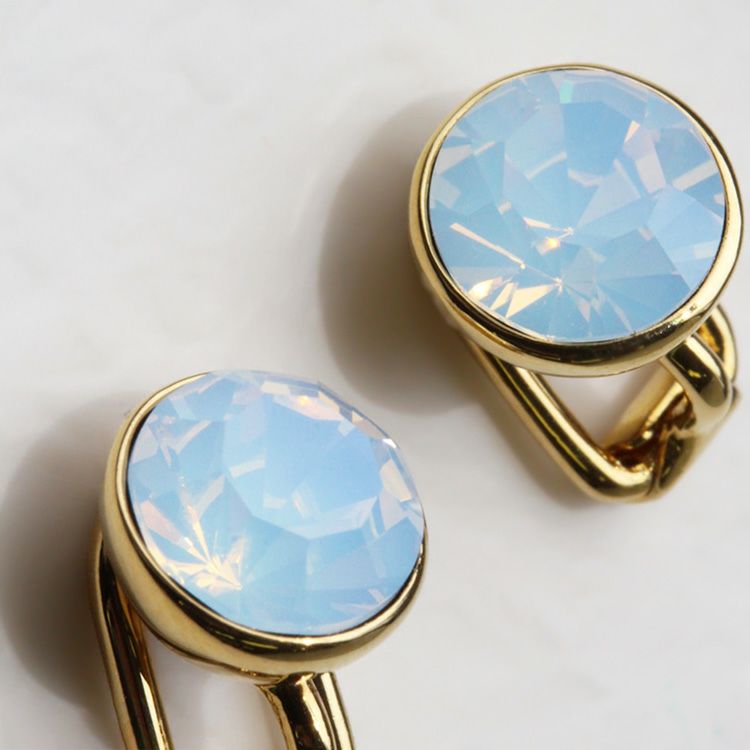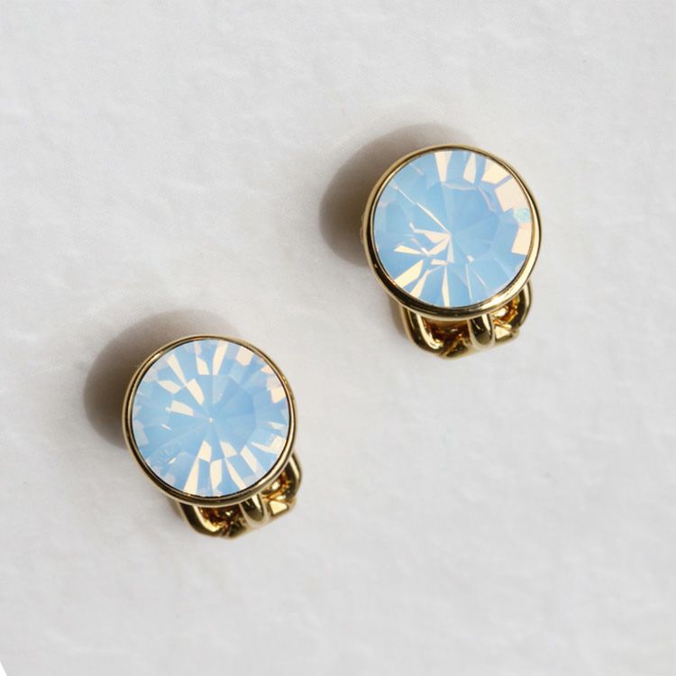透明感のあるホワイトのクリスタルを使用した一粒石タイプのイヤリング。ホワイトならではの柔らかく優しげな印象で、クリアカラーのビジューとは一味違う魅力があるのでクリアの一粒石タイプをお持ちの方にもオススメ。ほんのりとニュアンスを変えるだけで装いの幅が広がります。