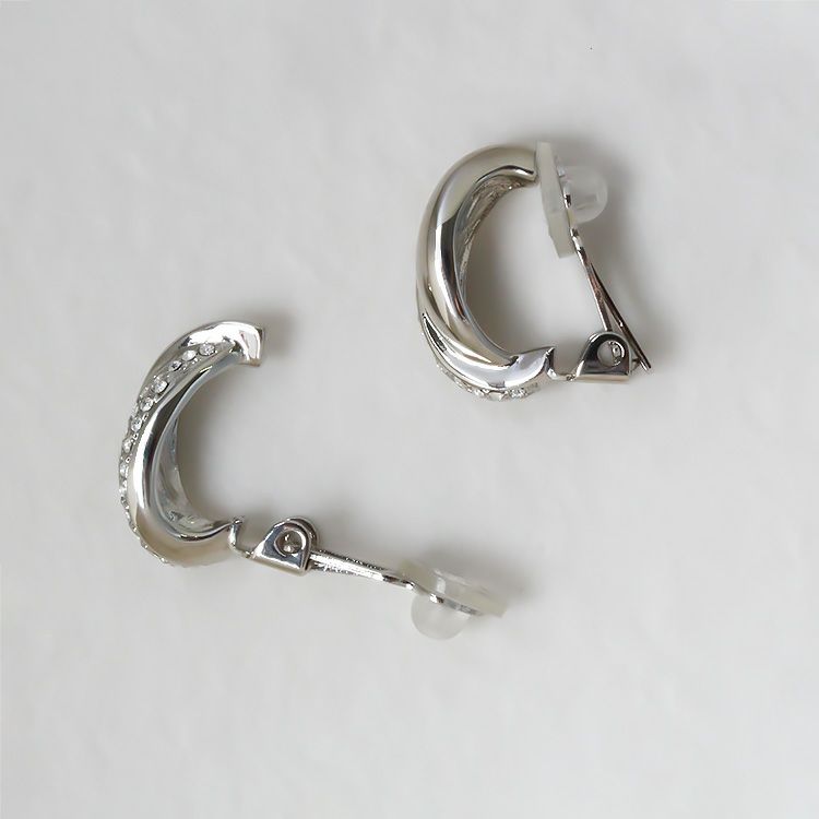 シーンや年代を選ばずご愛用いただける、エレガントなデザインのメタルイヤリング。艶のあるゴールドメタルとパヴェ状に配されたクリスタルガラスの輝きが、シンプルながらも装いのアクセントに。