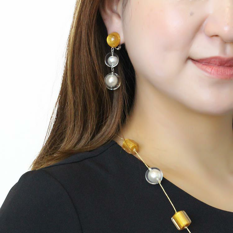 【ZSiSKA】≪FLOATING PEARLS≫レジンロングイヤリング