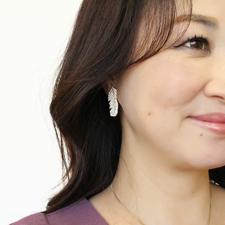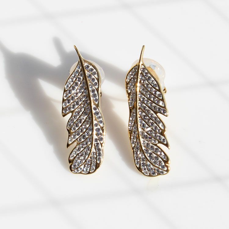 チェコクリスタルフェザーモチーフデザインイヤリング