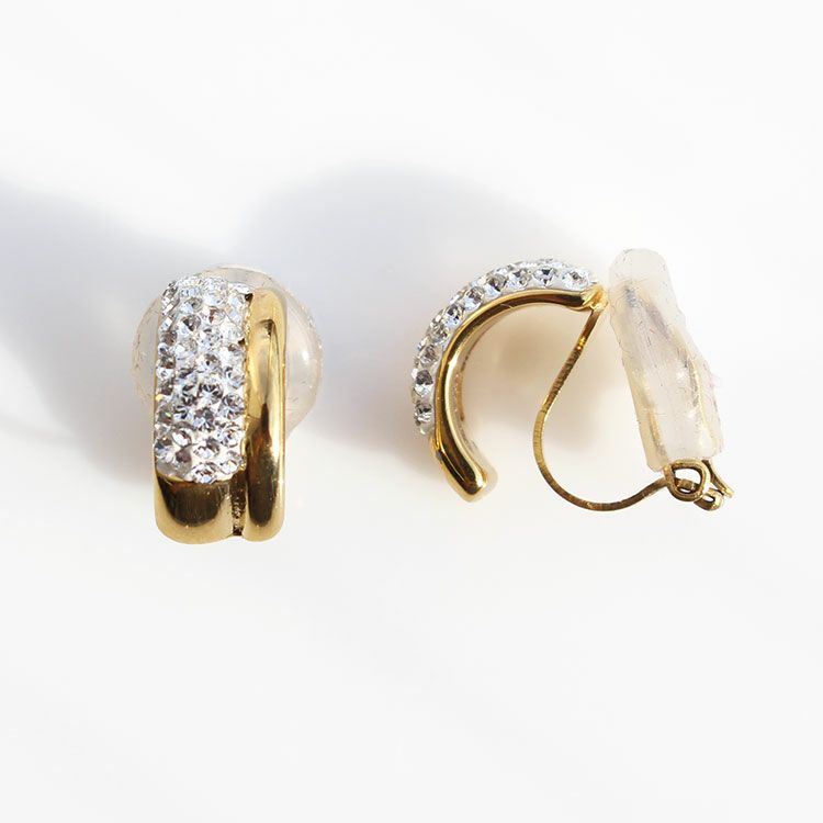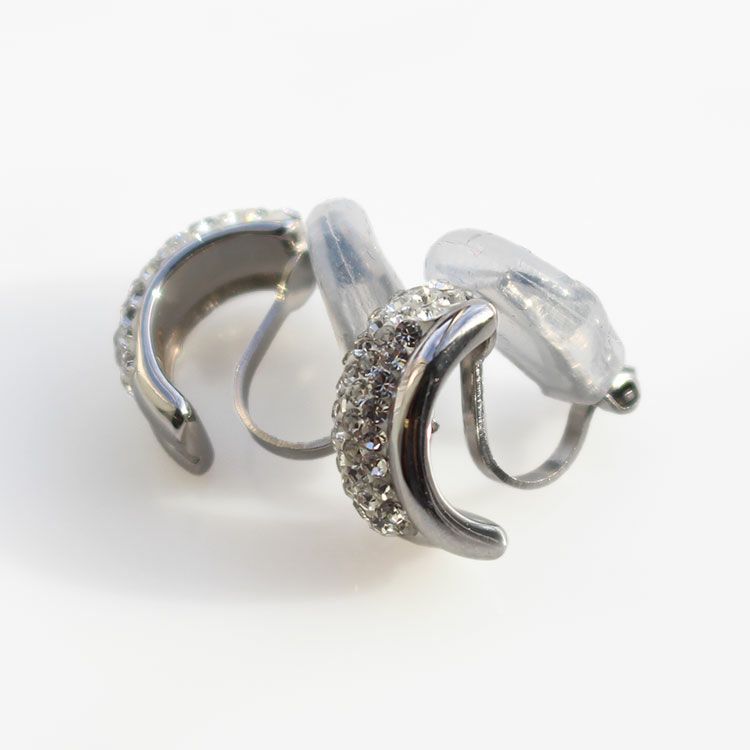 アーチ状に緩やかなカーブを描くデザインイヤリング。表面にはパヴェ状にチェコクリスタルが敷き詰められ輝きを放っています。