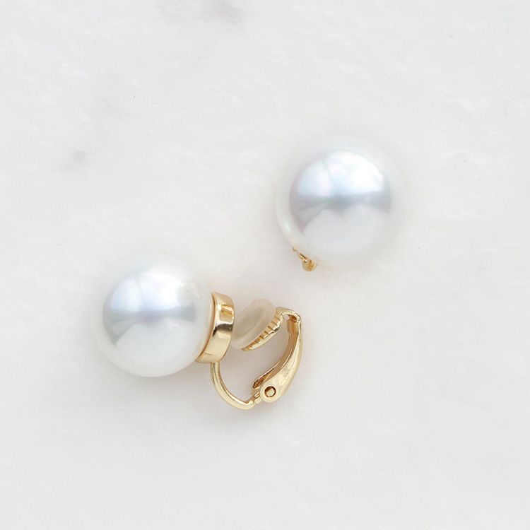 世界一の人工パールといわれるスペイン、マヨルカ島で生産されるマジョルカパールのイヤリング。華やかな大粒の14mm玉。