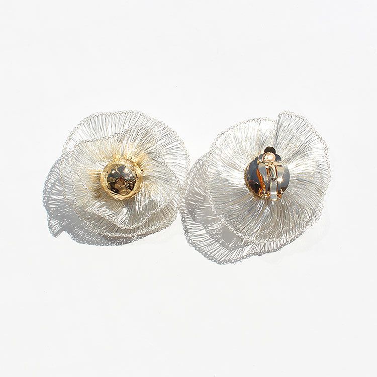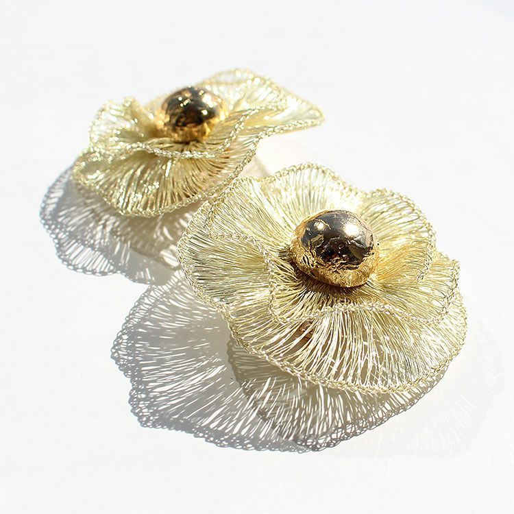 コッパーワイヤーを繊細な手仕事でお花のように編み上げたフラワーモチーフイヤリング。しっかりとした艶感がありながらも、しなやかな表面感が魅力的なデザインはまるで芸術作品のような美しさです。 パーティーや会食、女子会、カジュアルシーンなどに幅広くご利用いただけます。