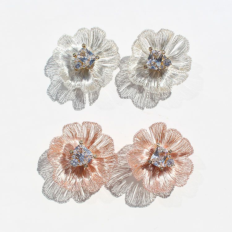 コッパーワイヤーを繊細な手仕事でお花のように編み上げたフラワーモチーフ×ビジューイヤリング。しっかりとした艶感がありながらも、しなやかな表面感が魅力的なデザインはまるで芸術作品のような美しさ。中心に煌めくキュービックジルコニアがより華やかさをUPさせています。 パーティーや会食、女子会、カジュアルシーンなど幅広くご利用いただけます。