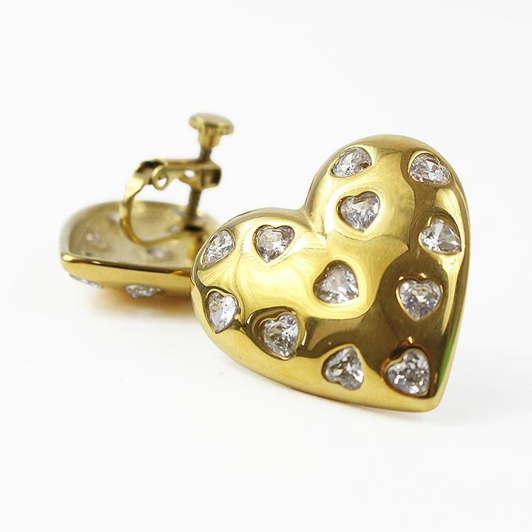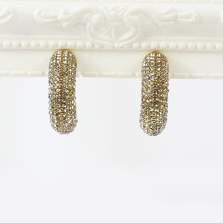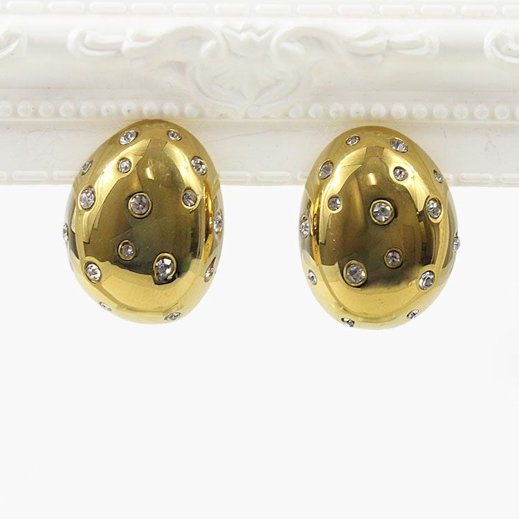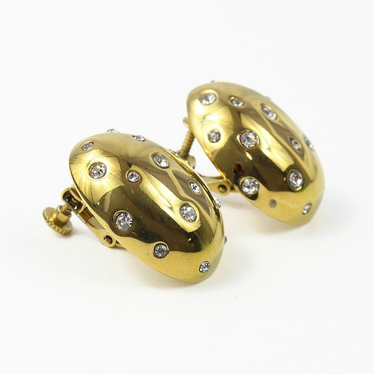 クリスタルガラスドットキルティングモチーフラウンドメタルイヤリング