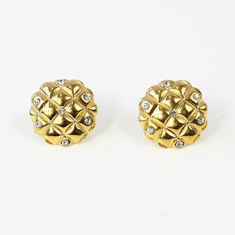 クリスタルガラスドットキルティングモチーフラウンドメタルイヤリング
