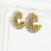 細かなクリスタルガラスが全面に配置されたハーフフープイヤリング。 おしゃれで華やかなデザインは、女子会やお買い物などのデイリー使いから、パーティーシーンまで幅広くご利用いただけます。ステンレス素材を使用しているので変色しづらく季節を問わずつけやすいのが特徴です。