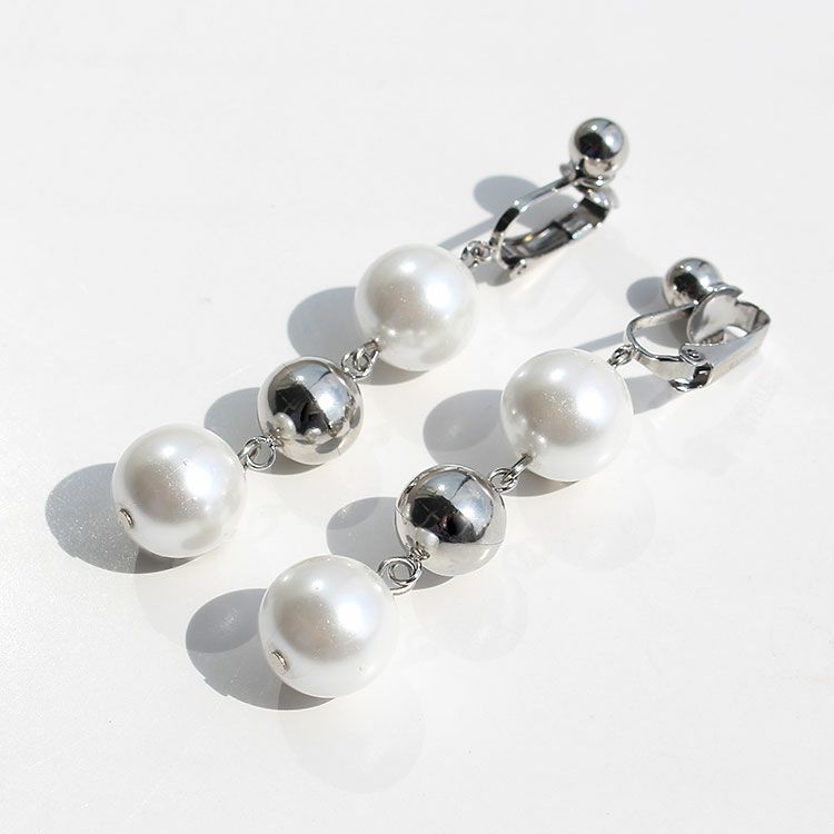 パールボール×メタルボールロングイヤリング