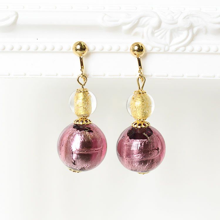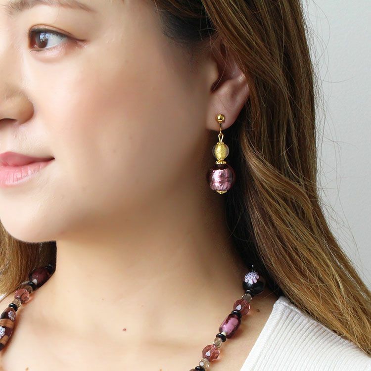 ベネチアンガラスフィオラートビーズロングイヤリング