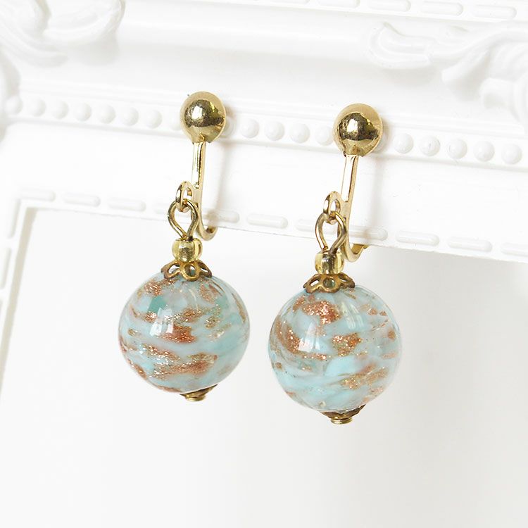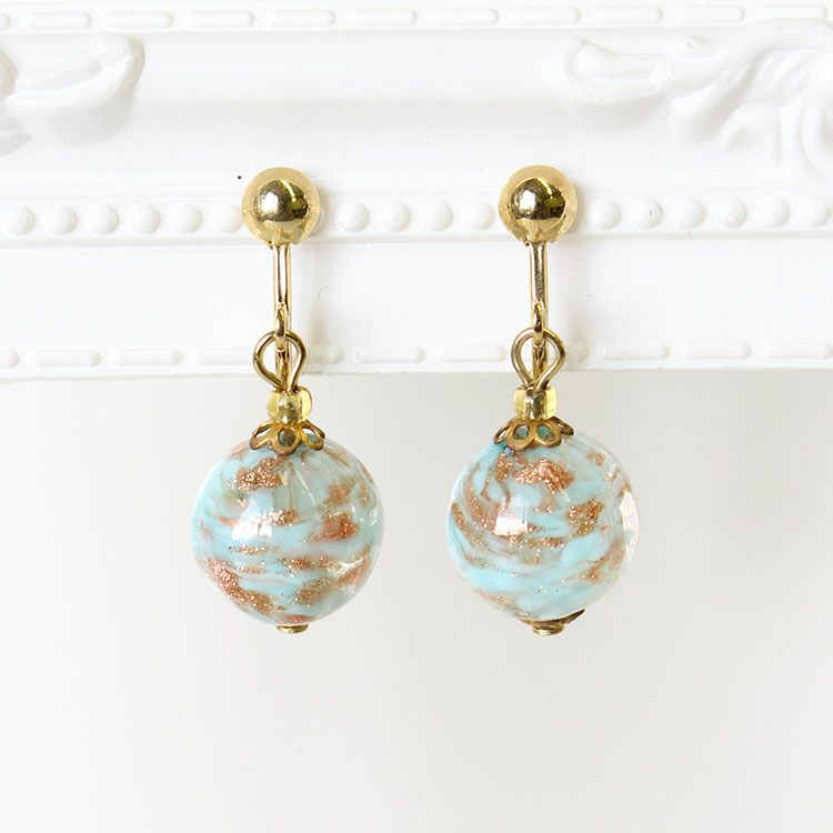 ベネチアンガラスアヴェンチュリーナビーズイヤリング