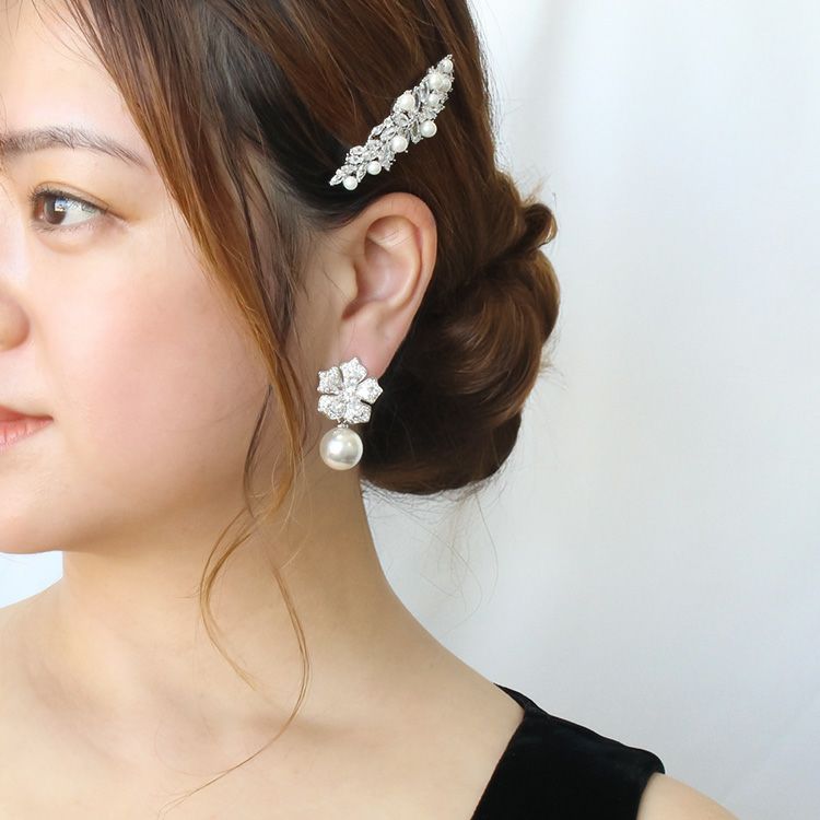 キュービックジルコニアフラワー×パールバレッタ