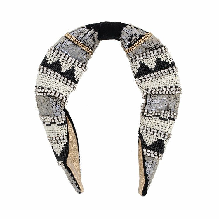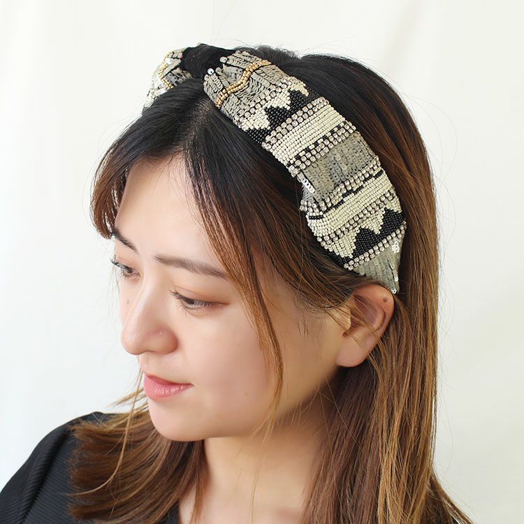 ビーズ刺繍が華やかなカチューシャ。つけるだけでいつものコーディネートを格上げします。