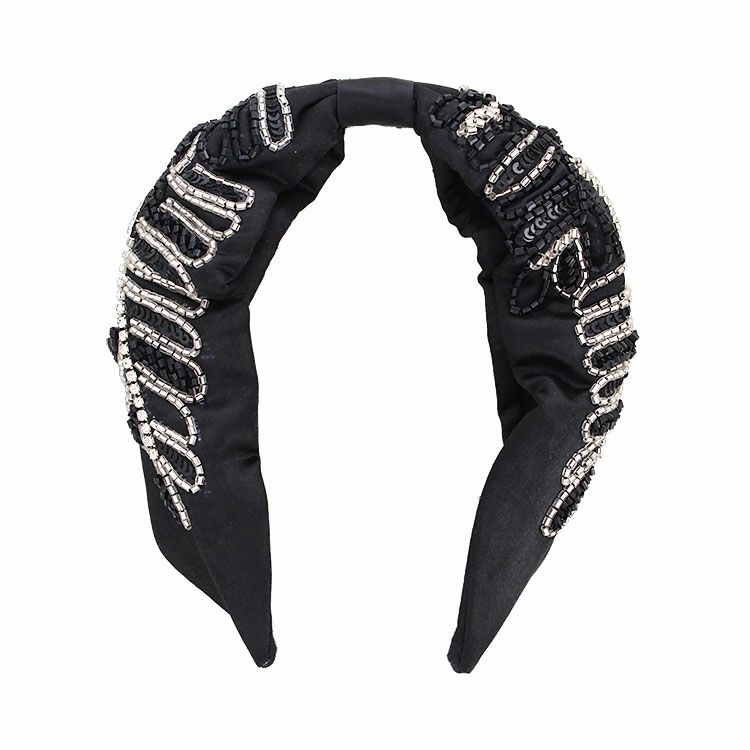 ビーズ刺繍が華やかなカチューシャ。つけるだけでいつものコーディネートを格上げします。