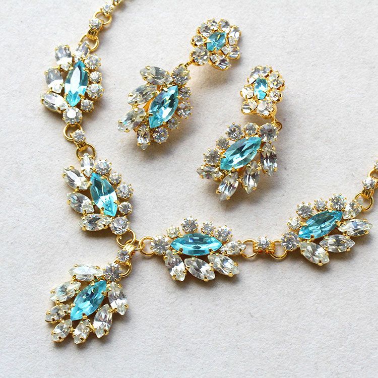 フラワーモチーフのビジューが華やかなショートネックレスとイヤリングのセット。キラキラと煌めくビジューが特別感を演出しています。パーティー、ブライダルジュエリーはもちろん、発表会や演奏会、舞台用のアクセサリーにもご利用いただけるネックレス・イヤリングセットです。