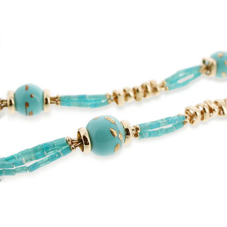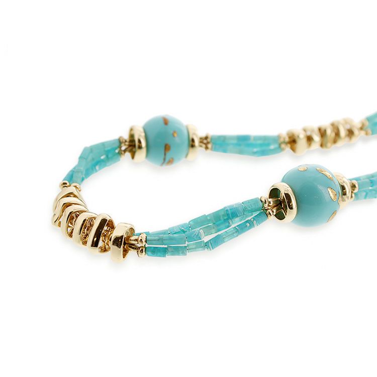ターコイズブルー×ゴールドの爽やかゴージャスな組み合わせ。首回りを華やかにします。