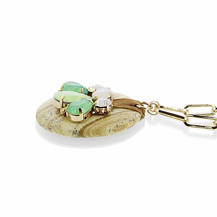 リゾート風の大ぶりなモチーフがポイント。モチーフ中心のクリスタルガラスが、光に当たるたびに輝きます。