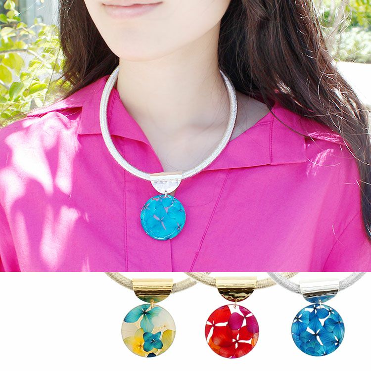アジサイ押し花マグネットクラスプネックレス/1020133