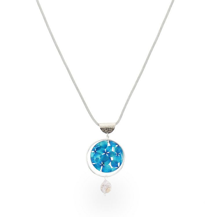 アジサイ押し花x淡水パールラウンドロングネックレス/1020134