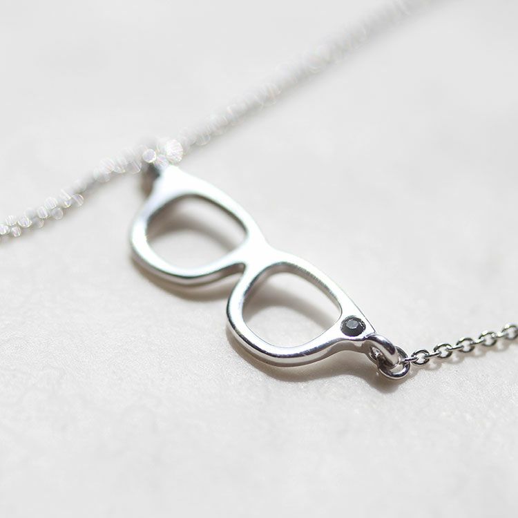 遊び心あふれるメガネモチーフアクセサリー。シルバー925素材のモチーフには、ポイントにクリスタルガラスをあしらいました。