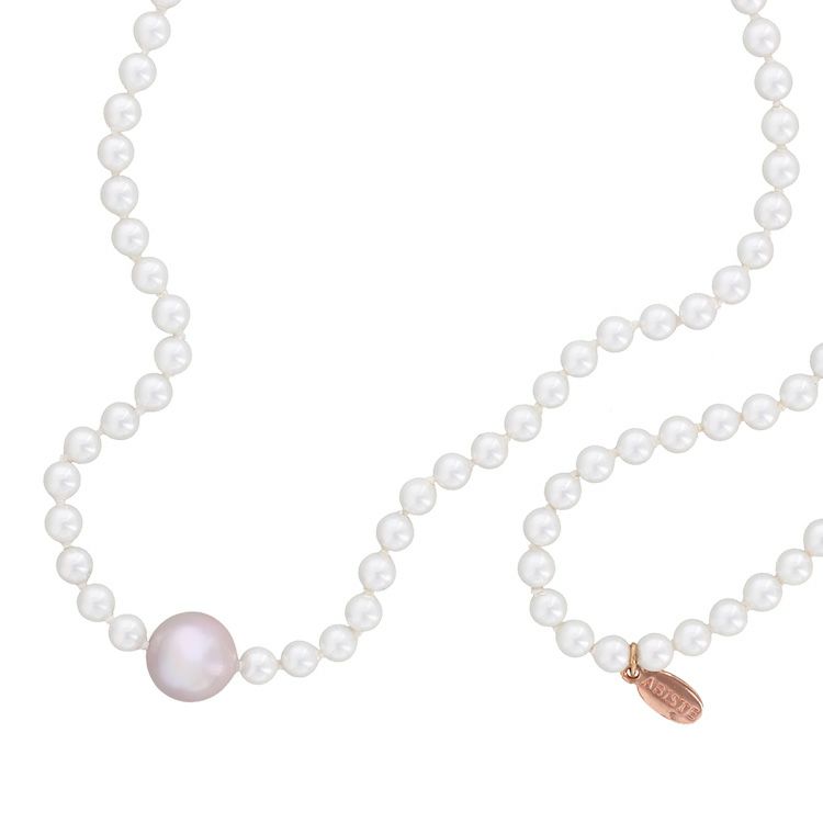 ガラス製の核に地中海に含まれる天然成分を素材とするパールエッセンスを幾重にも塗り重ね、人工でありながらも、内側から輝くような光沢・色合い・巻の厚みを再現しています。傷が付きにくく、汗や化粧水による品質変化が少ないため、天然真珠よりも扱いやすく、気軽に装えるのもマジョルカパールの魅力。夏でも素肌に安心してつけられます。