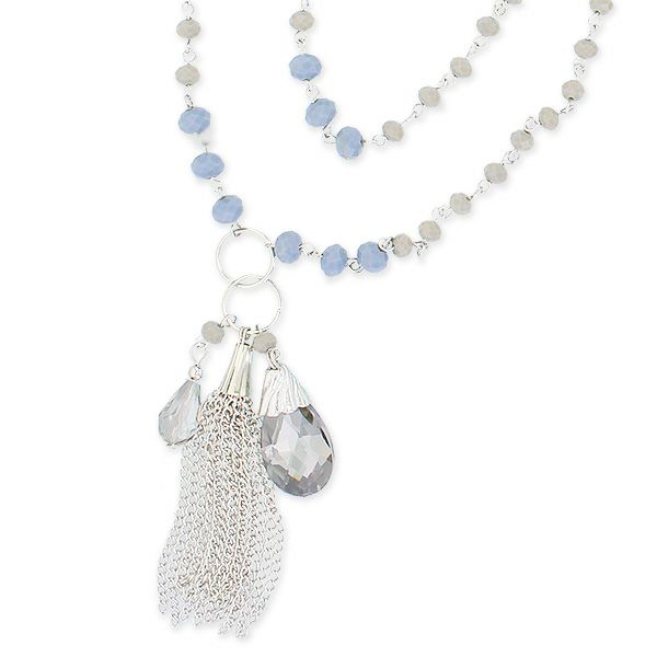 クリスタルガラス2連フリンジロングネックレス/1160009