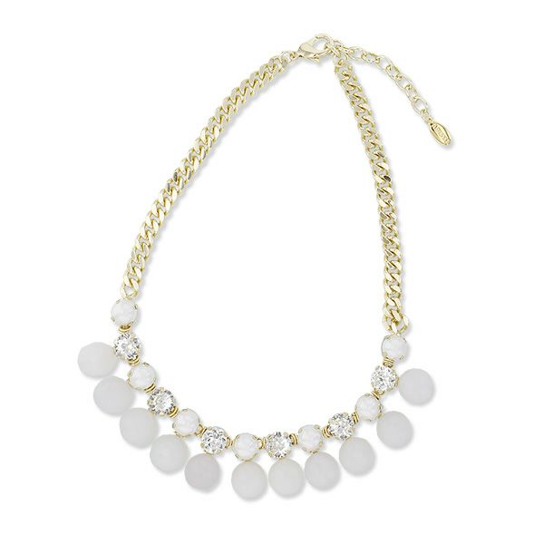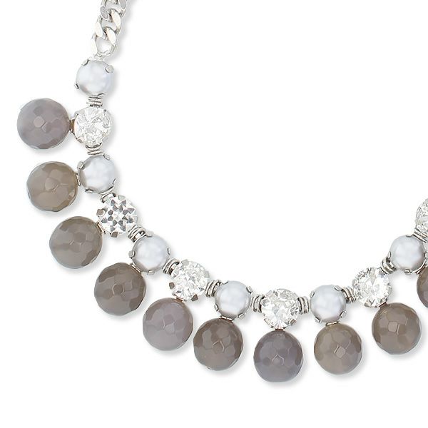 シルバーのメタルチェーンに大粒のクリスタルガラスをあしらった華やかネックレス。淡いグレーのクリスタルガラスが大人っぽさを引き出してくれ、上品さをプラスします。