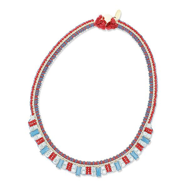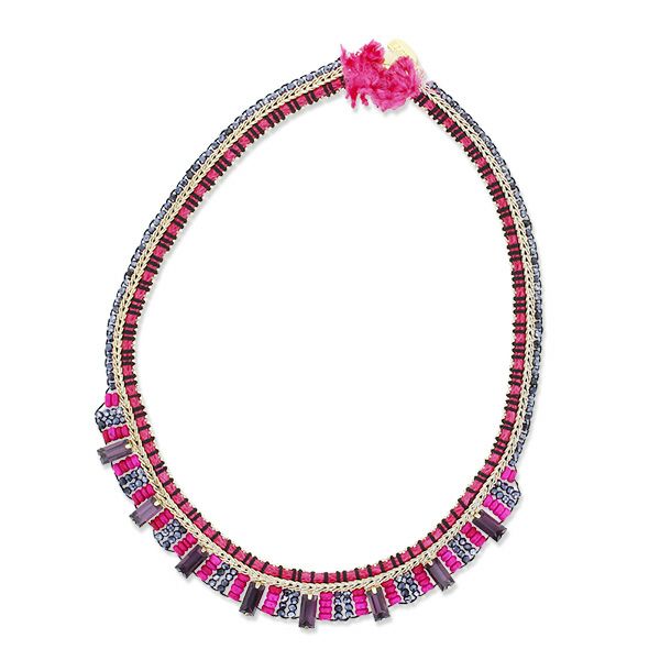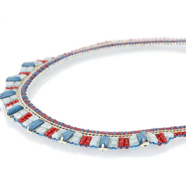 エスニック調のガラスビーズショートネックレス。鮮やかな色合いでシンプルなお洋服によく映え、明るい印象にしてくれます。