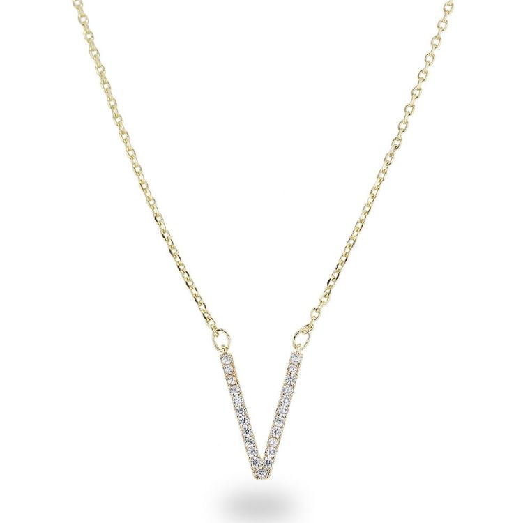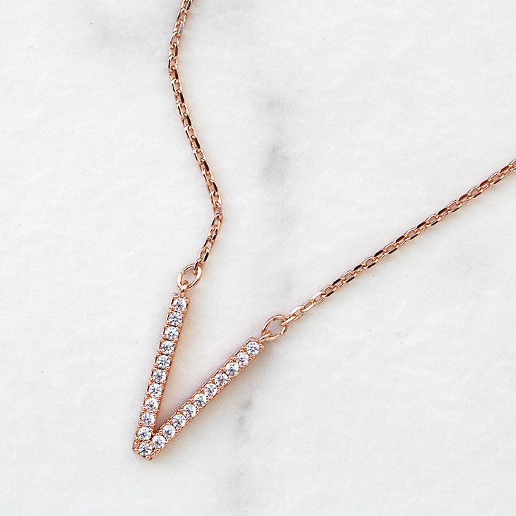 キュービックジルコニアの輝きが美しいショートネックレス。華奢なチェーンにV字のデザインがスッキリと上品な印象にしてくれます。