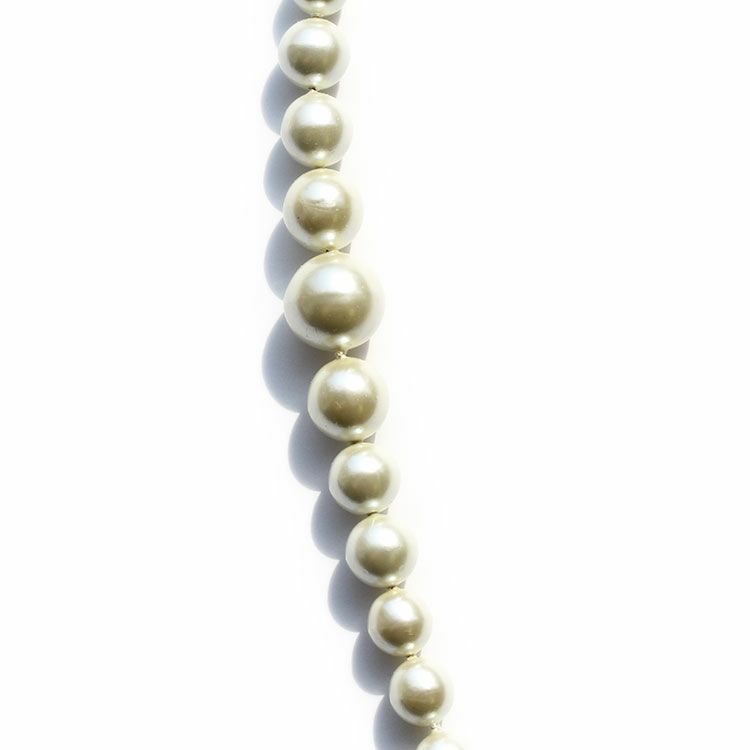 イタリア製ビンテージプラスチックパールを使用したロングネックレス。大小パールのバランスが洗練されたデザインです。軽いのでロングパールネックレスでも負担がありません。