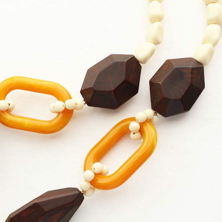 アクリルビーズの色合いが美しい大ぶりのイタリア製ショートネックレス。絶妙な洒落感のあるカラーリングとシンプルな造形でパッと目をひく洗練されたデザインに仕上げられたアクセサリーは、イタリア製ならではの魅力です。