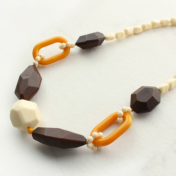 アクリルビーズの色合いが美しい大ぶりのイタリア製ショートネックレス。絶妙な洒落感のあるカラーリングとシンプルな造形でパッと目をひく洗練されたデザインに仕上げられたアクセサリーは、イタリア製ならではの魅力です。