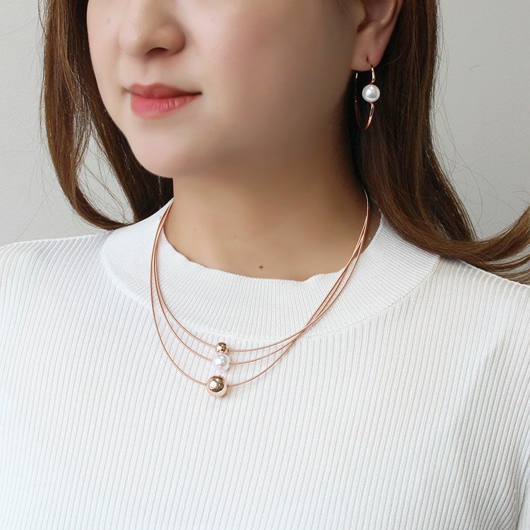 メタルボールとパールがアクセントになった3連ショートネックレス。首元に馴染みやすいデザインがデイリー使いしやすいデザインです。カジュアルからオケージョンシーンまで幅広くご利用いただけます。