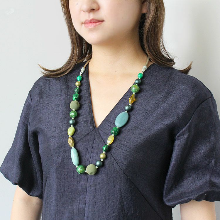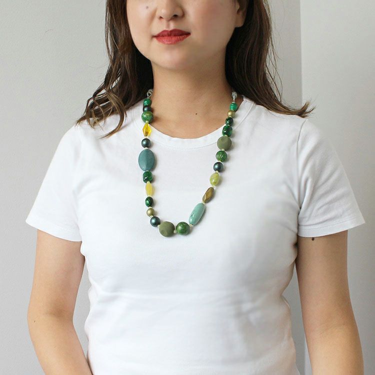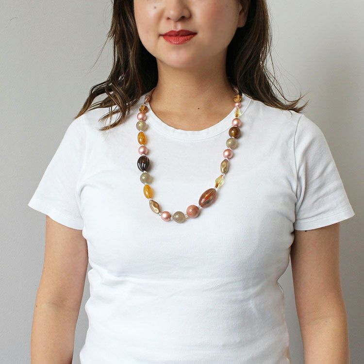 異なるニュアンスのヴィンテージビーズを繋げたロングネックレス。イタリアならではの絶妙なカラーが魅力です。