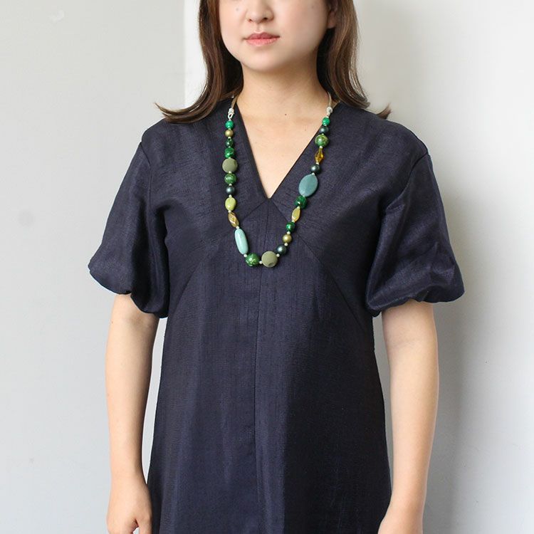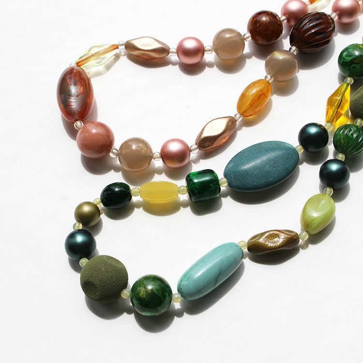 異なるニュアンスのヴィンテージビーズを繋げたロングネックレス。イタリアならではの絶妙なカラーが魅力です。