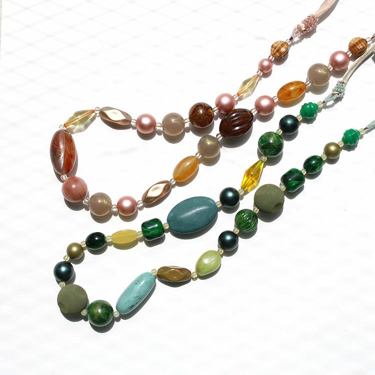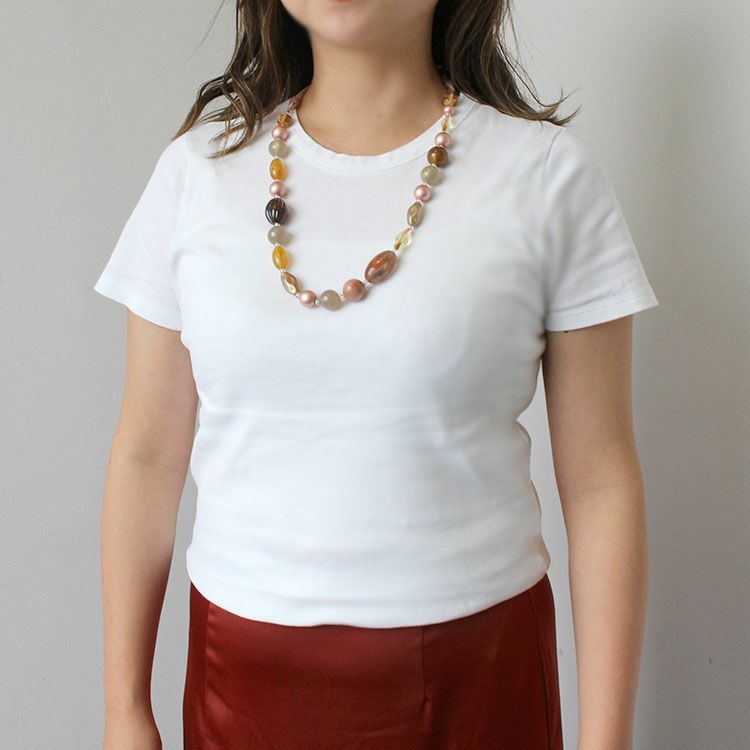 異なるニュアンスのヴィンテージビーズを繋げたロングネックレス。イタリアならではの絶妙なカラーが魅力です。