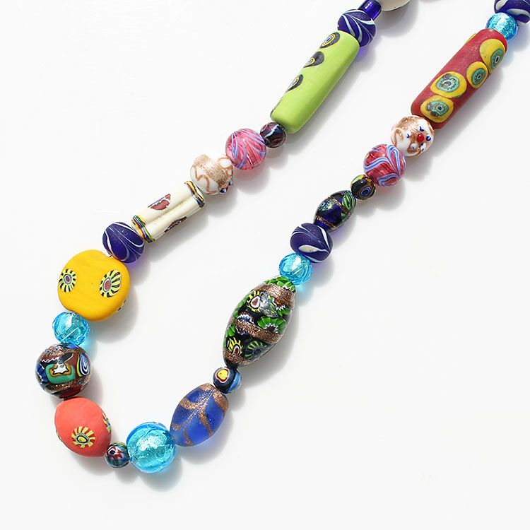 ベネチアンヴィンテージガラスビーズデザインロングネックレス