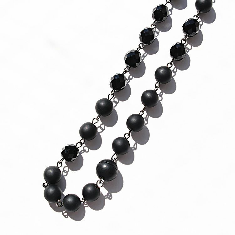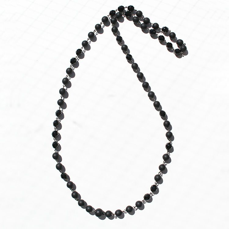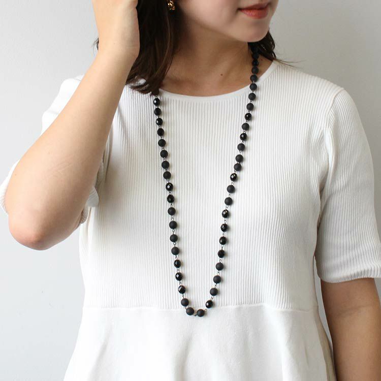 同色のニュアンスの異なるビーズを組み合わせたロングネックレス。パーティーなどでエレガントに使用するのはもちろん、カジュアルなコーディネートにも最適です。