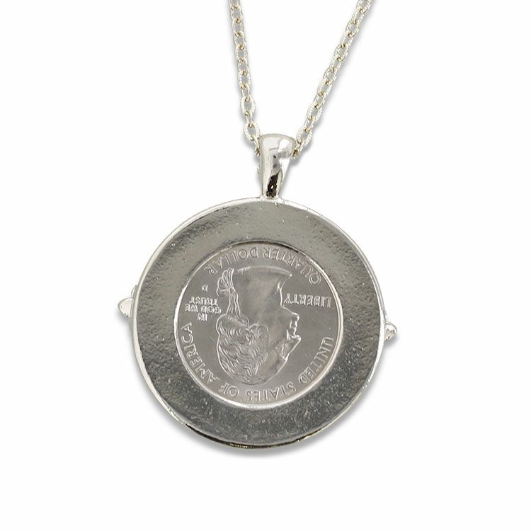アメリカハワイ州の25セントコインを使用したネックレス。コイン周りにプルメリアのお花をあしらい、ハワイらしく仕上げました。 本物のコインをアクセサリーとして加工したものなので、コインの年号は異なります。