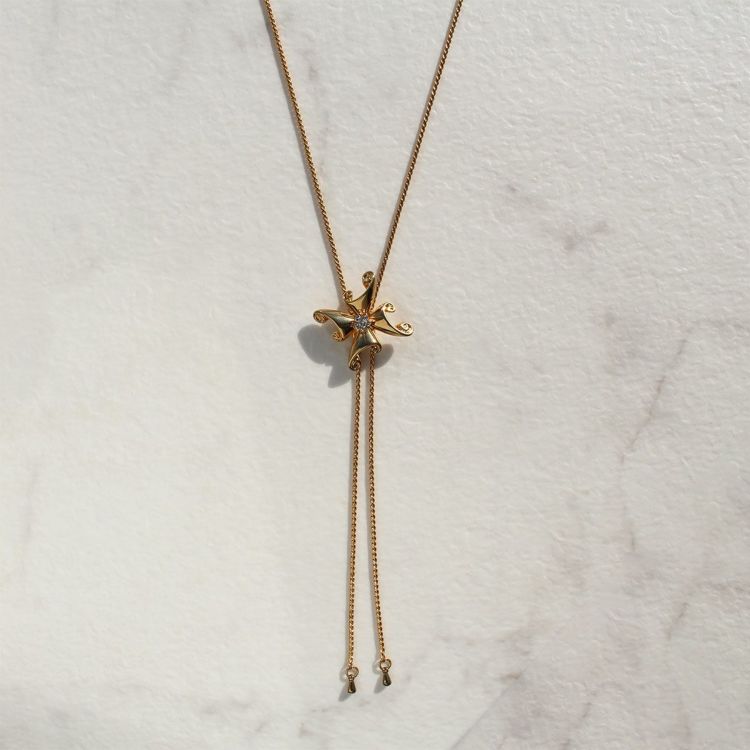スネークチェーンを用いたY字タイプのロングネックレス。華やかなメタルパーツをスライドパーツのアクセントに配した、華やかさと使いやすさを備えたネックレスです。長さや左右のバランスを自在に調節できるので洋服に合わせてしっくりくるバランスで着用可能。長めにしてショートネックレスを重ねたり、パールとのレイヤード使いもおすすめ。カニカン(ロブスタークラスプ)が付いていますがかぶるだけで着用もできるので、つけ外しのしやすさも嬉しいポイントです。