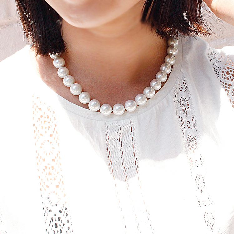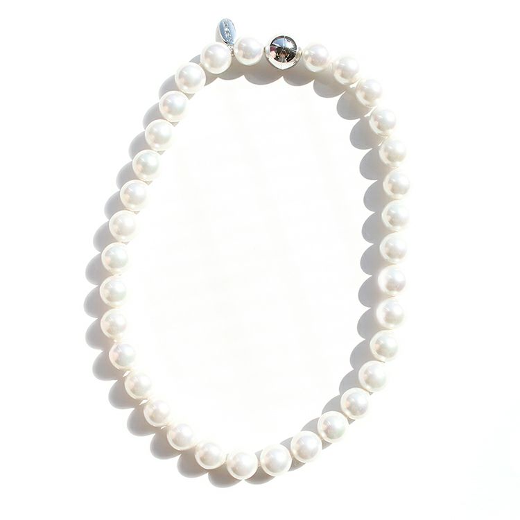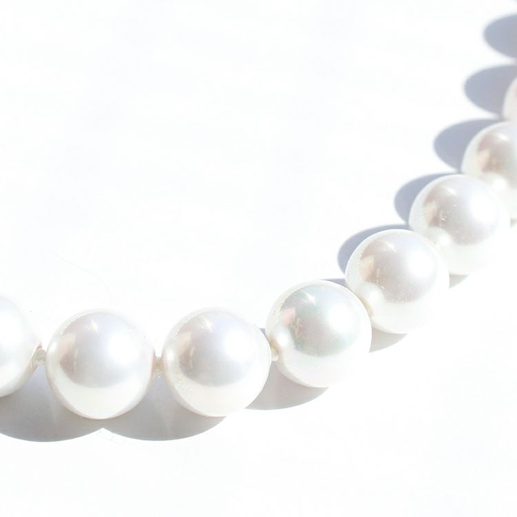 世界一の人工パールといわれるスペイン、マジョルカ島で生産されるマジョルカパールのネックレス。 マジョルカパールとは、地中海に含まれる天然成分を素材に幾重にもパールエッセンスを塗り重ね、人工でありながらも、天然真珠そのままの内側から輝くような光沢・色合い・巻の厚みを再現。天然真珠よりも扱いやすく、気軽に装えるのもマジョリカパールの魅力です☆