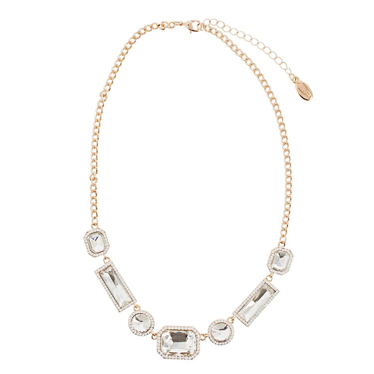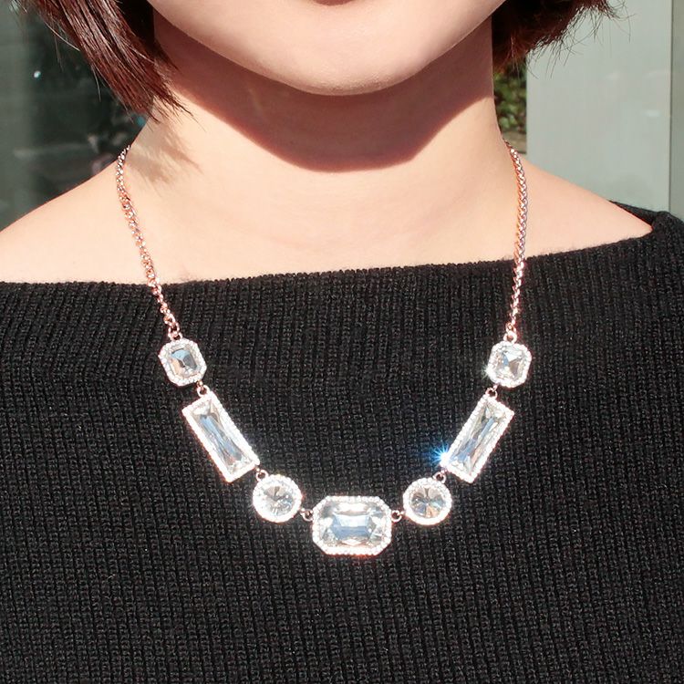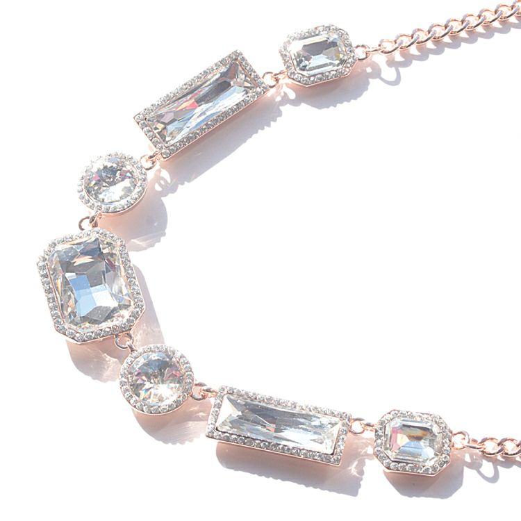 チェコストーンをふんだんにあしらったエレガンスなデザイン。 ピンクゴールドにクリスタルガラスが眩しいほどに輝くファビュラスなネックレスです。